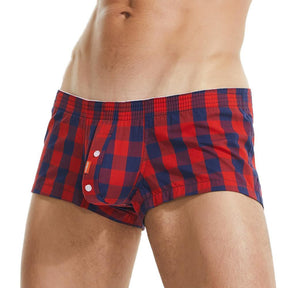 Classic plaid boxer shorts in your new favorite fit! The absolute best boxers you will ever wear. Mid-thigh fit, bum-hugging design, and extra pronounced bulge pouch for additional comfort.
